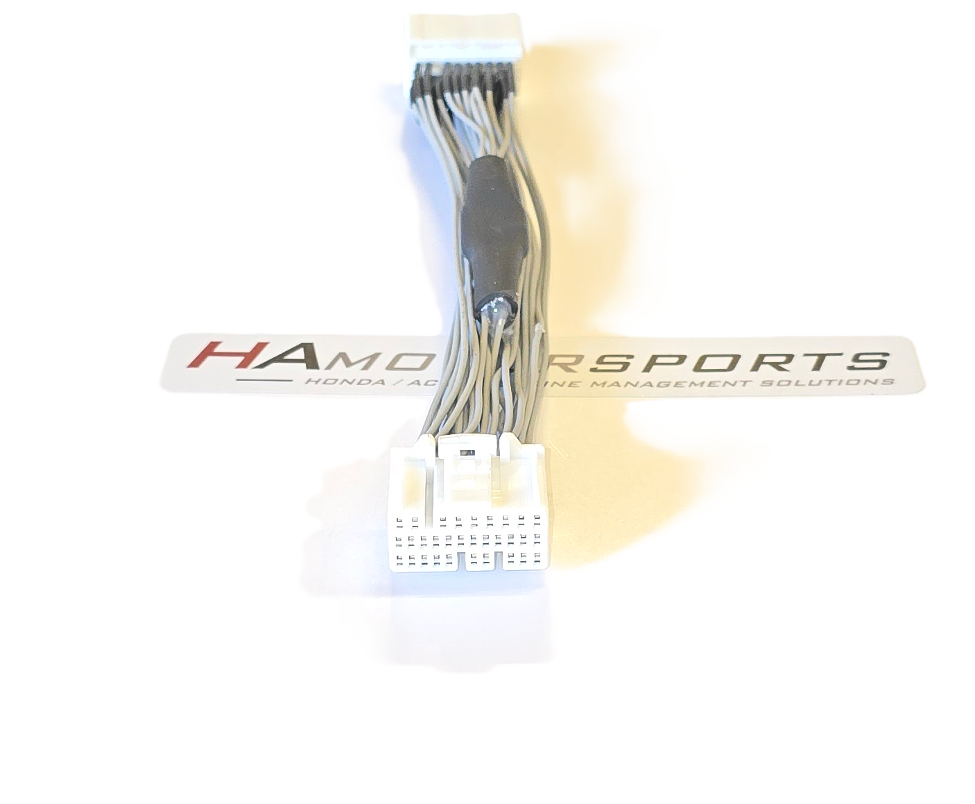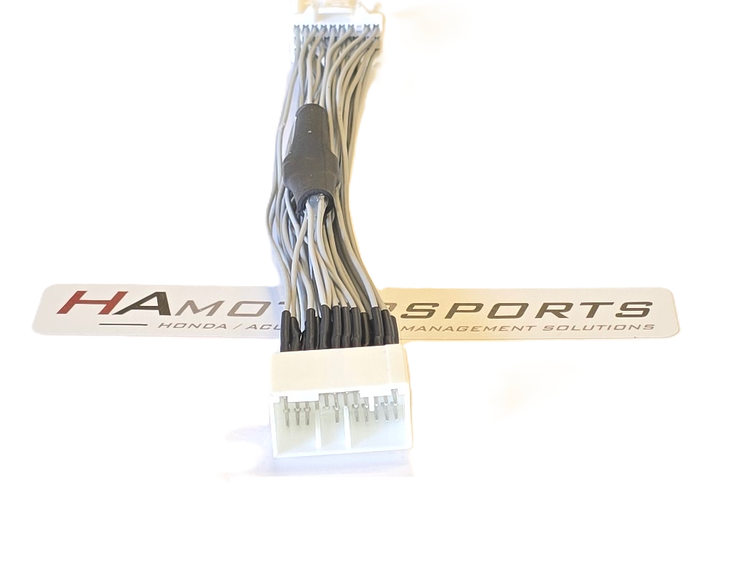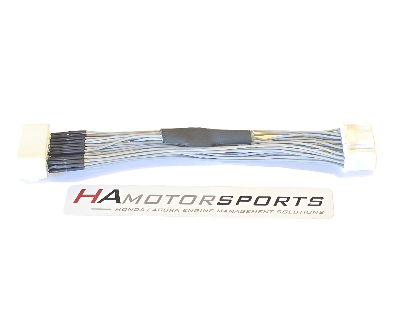 HA Motorsports signal converter harness for installing a Hondata KPro equipped K Series ECU into 01-05 Honda Civic with D17A engine.   This harness has a built-in digital signal converter to allow the stock cam gear to be left in place.  No need to swap out to a different cam gear!